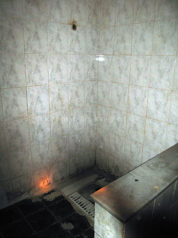 Bir de hücreler var tabii. Dar koridorlardan giriliyor, 2 kişilik ranzaların yanından kolunuzla duvara uzanabiliyorsunuz, üst kattan da tavana. Hücrenin sonunda alaturka tuvalet var, bir metre yüksekliğinde bir duvarın arkasında, kapısı, perdesi yok. Kollarının uzandığı tavana yazılar yazmışlar duvarlara resimler çizmişler. Mercedes bir kamyon, sahibinin adı yazıyor. Bir grup insan. Hiç doğal ışık girmediği için el feneriyleyiz, bir yerlere tutuyoruz ve yeni şeyler çıkıyor. Bir uçak ve bir keçi. Özenli resimler.