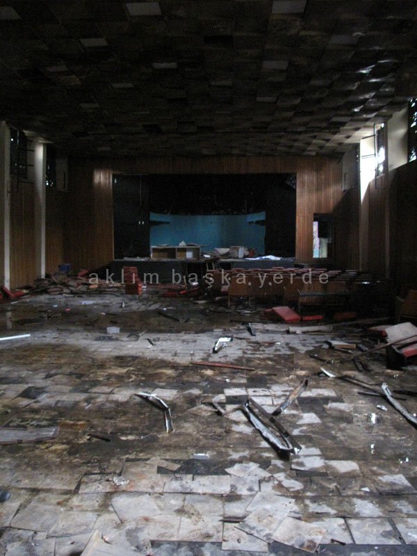 Tiyatro ve sinema salonu oldukça etkileyici. Ses yalıtımı, tasarımıyla hacim çok iyi durumda. Zamanında oyunlar oynandığı gibi bir çok filmin galası da burada yapılmış. Şu anda 35mm filmler etrafa saçılı, pencerelerden aşağı sarkıyor, pozitif filmlerden altyazıları bile okuyabiliyoruz.